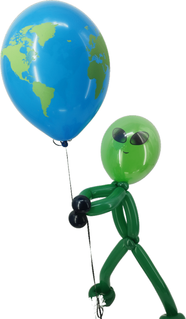 Kosmita z balonów — połączenie balonów do modelowania i jednego 12-calowego balona lateksowego to popularny projekt wśród twórców balloon-art. W sieci znajdziesz wiele filmów pokazujących różne podejścia do tego motywu — od prostych, zabawnych projektów, po bardziej rozbudowane figurki.
