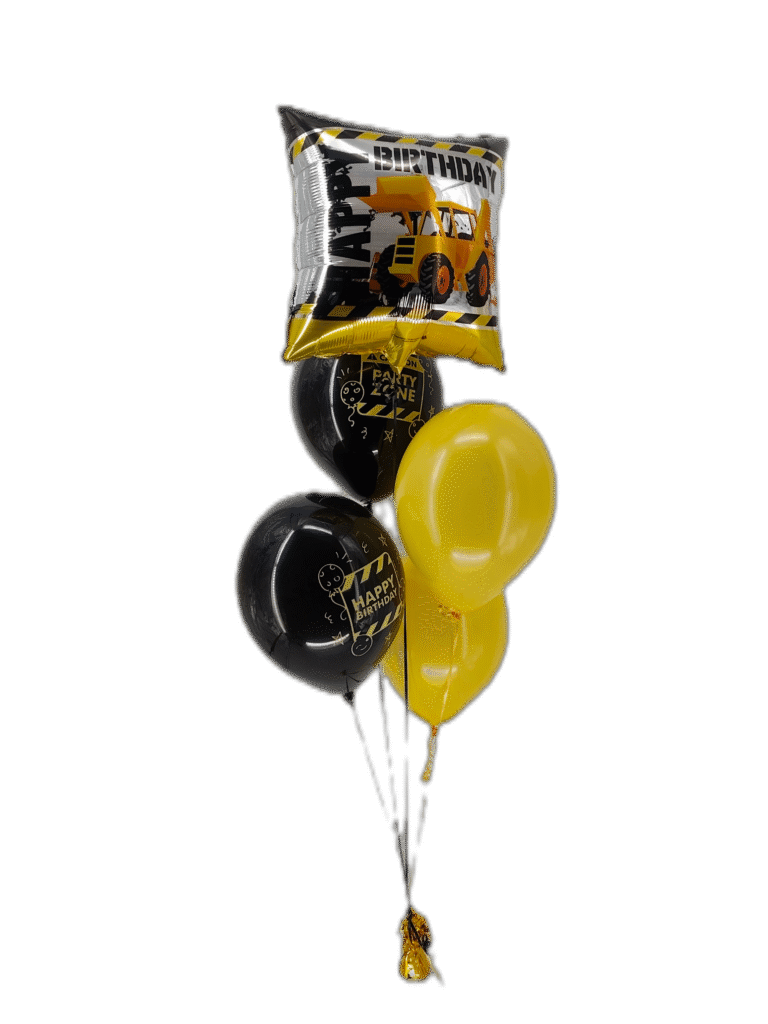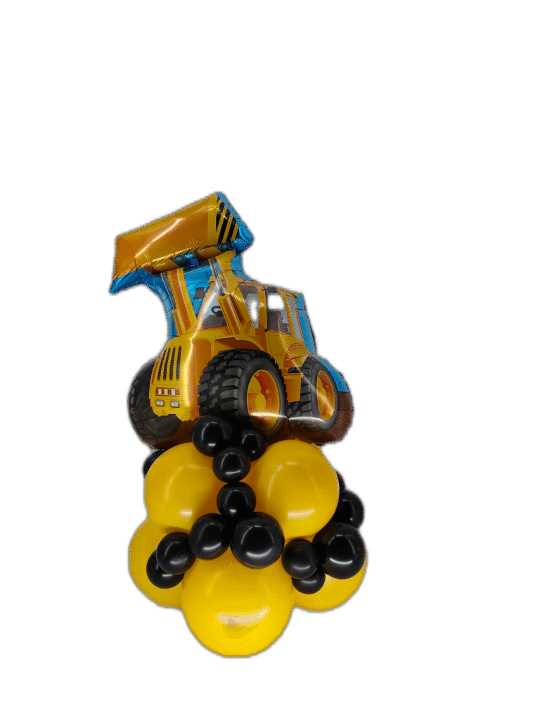 💡 Wskazówka: odpowiedni dobór kolorów (żółty + czarny) robi ogromną różnicę i od razu kojarzy się z maszynami budowlanymi. Jeśli pojazd jest inny to dostosuj kolory baloników do pojazdu.